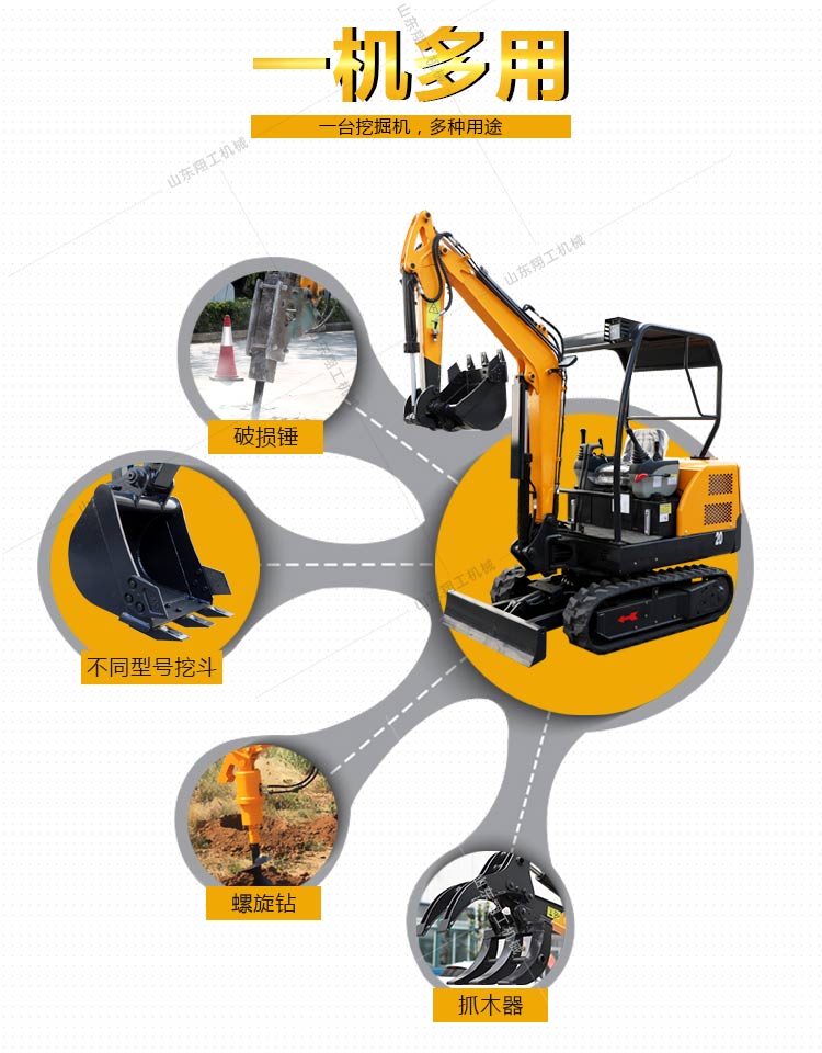 2t小型挖掘機(jī)主要適用于農(nóng)業(yè)蔬菜大棚的土地疏松,市政部門的園林綠化、果園苗圃栽樹挖坑、混凝土路面破碎,砂石料攪拌等空間狹小的施工作業(yè)等。